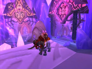 Exodar is ridiculously hard to learn to find your way in. Everything looks exactly the same – transparent glass and pinkish and purple light. I finally found the way out of town (an annoyingly long run up the ramp). There’s also a well hidden way out on the backside, but it doesn’t save much time. When I did my research I got lost several times. It really gave me a headache.